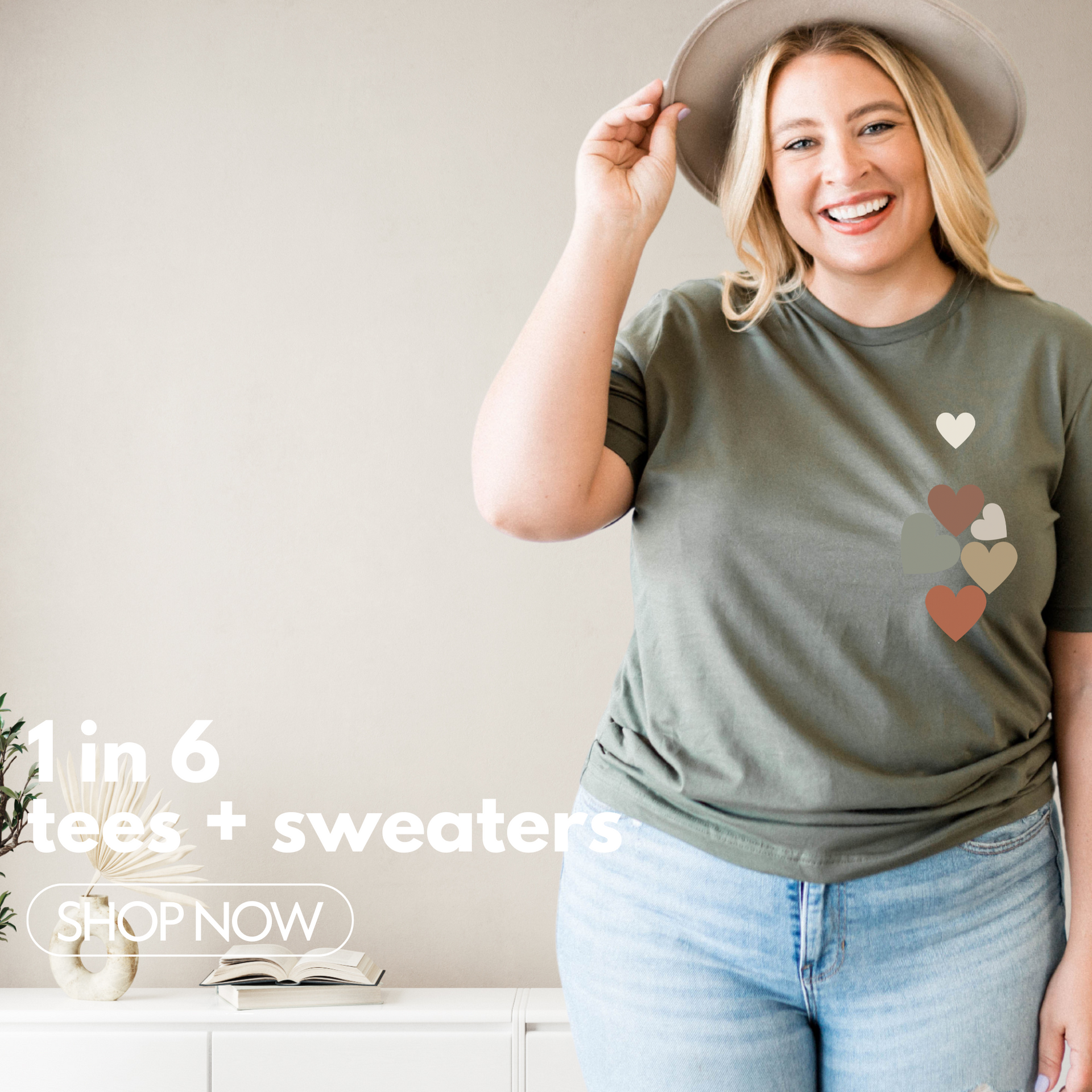 I love the design and message of the shirt, but I was disappointed in the quality given the price. The shirt itself is very soft and a thin material, which I liked. However, the application of the design made that area of the shirt feel stiff and papery. Also, I ordered the tan shirt and the smaller pink-ish heart nearly blends in with the shirt.