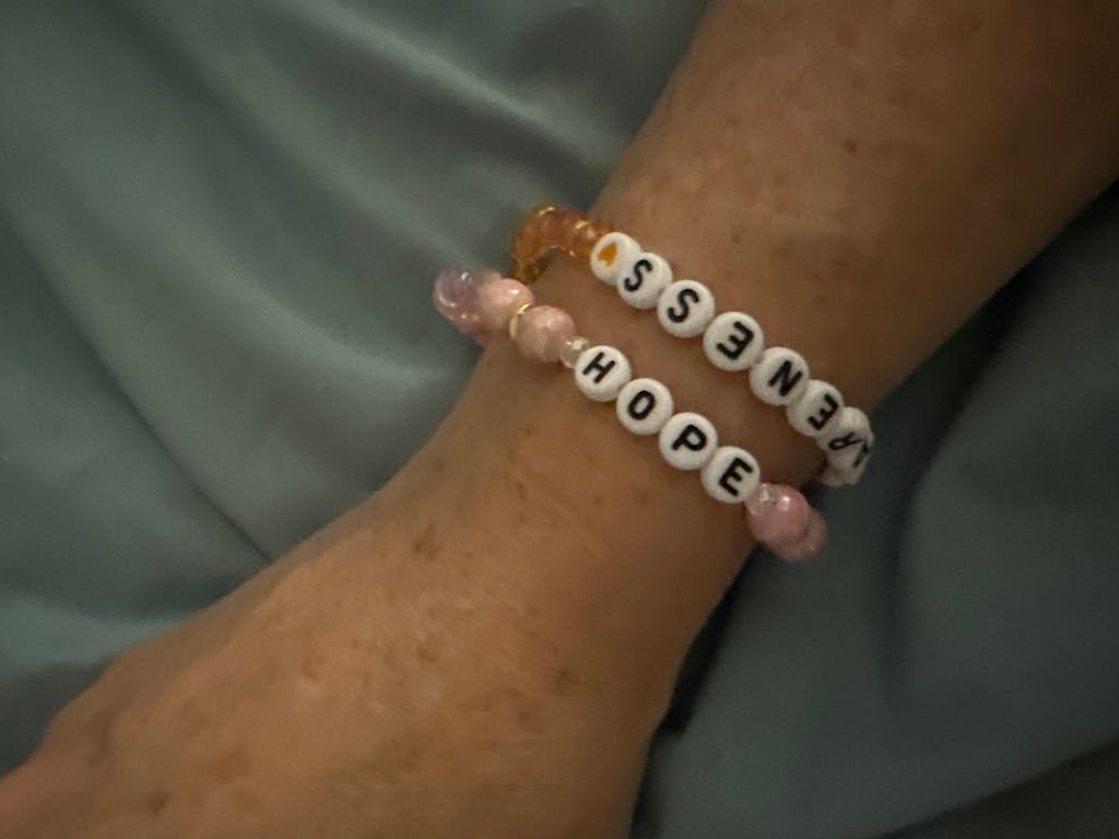 The pink and silver Hope bracelet is stunning! The sparkly and shine from the crystals is radiant and the fit is perfect. A lot of these bracelets can pinch the skin or be too tight but Marilyn has this bracelet at a perfect fit! My rainbow baby pulls at it and it’s strong and stands the test of time!